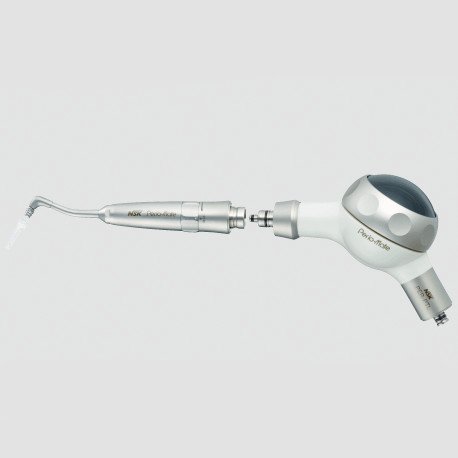 Le Perio-Mate NSK est un aéropolisseur dentaire spécialement conçu pour le traitement non invasif des poches parodontales. Grâce à son système de pulvérisation douce et ciblée associé à l’utilisation de poudre de glycine, il élimine efficacement le biofilm sous-gingival tout en préservant les tissus mous.