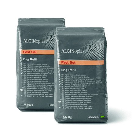 L'alginate dispose d'une consistance ferme et qui possède une bonne tenue durant la prise d'empreinte. Alginoplast est conçu à base de produits naturels de qualité comme les algues marines afin que la peau et les muqueuses l'acceptent correctement. Cela signifie que l'alginate ne contient pas d'agent conservateurs ni de produits chimiques de désinfection. Sans poussière, l'alginate offre une prise rapide tout en gardant une grande performance, une forte élasticité et une résistance incroyable aux déchirements. De plus, lors de sa préparation, il est agréable à mélanger et est compatible avec tous les plâtres.