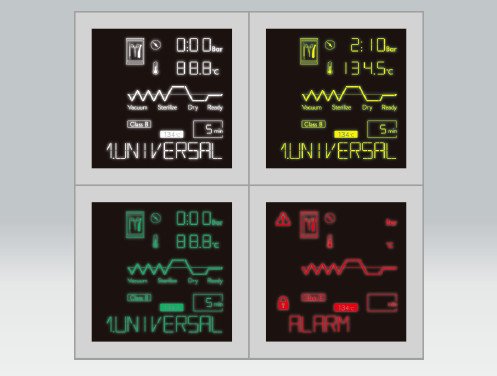 L'écran de contrôle a été très bien pensé, il est élaboré, permettant d'indiquer les informations primordiales (pression, température, etc.) de manière organisée aux professionnels de santé. Il dispose d'une distinction de couleurs dépendant de l'état de l'appareil, apportant une clarté lors du contrôle des cycles de stérilisation.