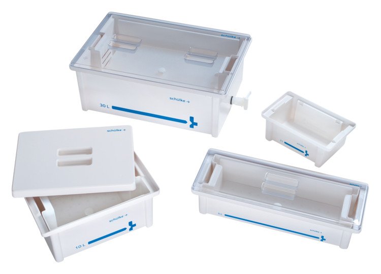 Les bacs de désinfection Schülke également appelés bacs de décontamination et bacs de trempage sont utilisés dans la dentisterie pour la désinfection des instruments de soins par immersion.