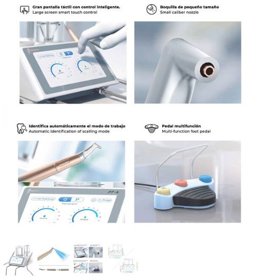 Le PT-B est une unité de prophylaxie complète réunissant dans un même dispositif un détartreur ultrasonique performant et un aéropolisseur professionnel. Conçu pour la prophylaxie avancée, il permet d’effectuer le détartrage, le nettoyage supra-gingival et sous-gingival, l’élimination du biofilm, des colorations extrinsèques ainsi que la maintenance implantaire.