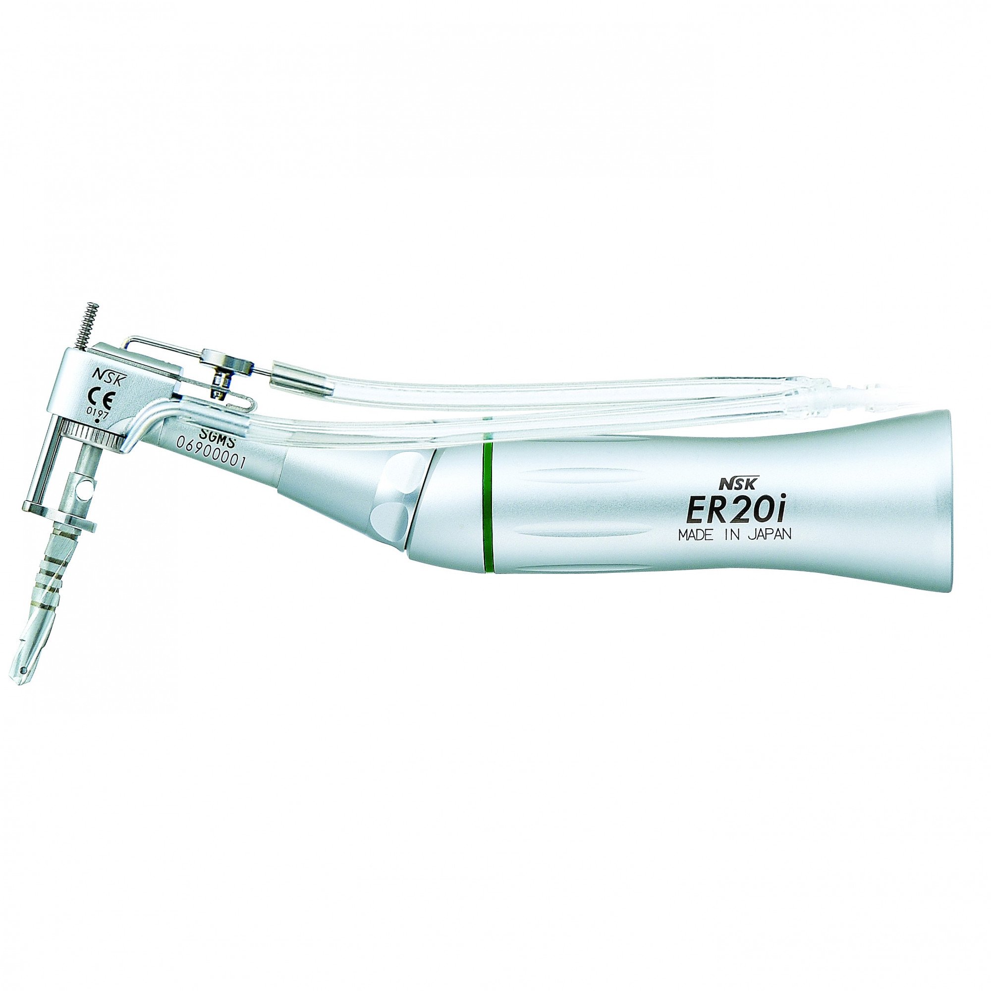Le contre-angle SGMS-ER20i possède une caractéristique qui a tendance à faire parler de lui. En effet, l'instrument possède une double irrigation. L'irrigation interne, traverse l'intérieur du foret tandis que l'irrigation externe permet de garder le contre-angle froid. Les deux tuyaux d'irrigation sont stérilisables en autoclave.