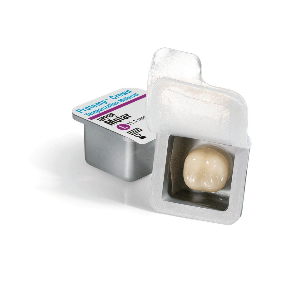 Les couronnes Protemp 3M sont fabriquées en matériau composite préformé, malléable et photopolymérisable, posé provisoirement.