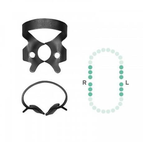 Le crampon à digue Blackline molaire est un crampon de couleur noire, fabriqué en acier satiné breveté. Il est reconnu pour sa résistance à la corrosion, sa solidité supérieure et son bon équilibre entre flexibilité et mémoire de forme.