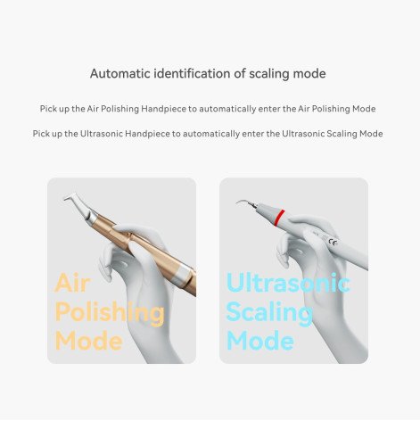 Le AP-B combine un détartreur piézoélectrique haute performance et un aéropolisseur professionnel 2 en 1, offrant une solution complète pour la prophylaxie supra-gingivale, sous-gingivale et les traitements endodontiques. La sélection automatique selon la pièce à main soulevée permet une adaptation instantanée au besoin clinique.