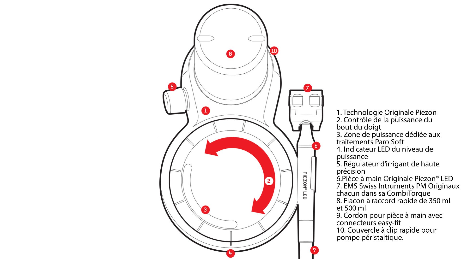 Le détartreur Piezon 250 est également doté d'une gamme d'embouts spécialement conçus pour s'adapter à différentes procédures de détartrage, garantissant une polyvalence maximale.