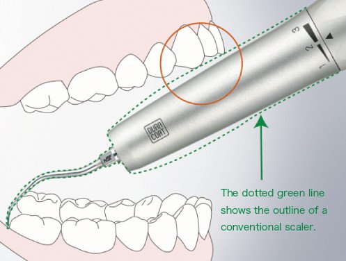 Le détartreur possède un design innovant, notamment avec un corps fin qui confère au praticien une visibilité optimale des zones les plus sombres.