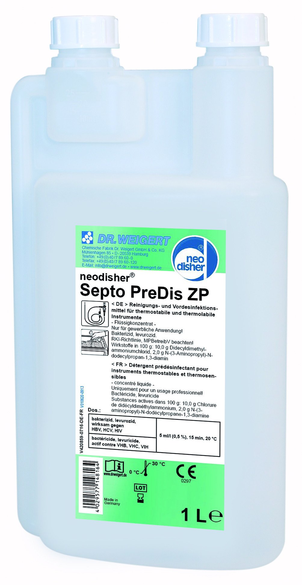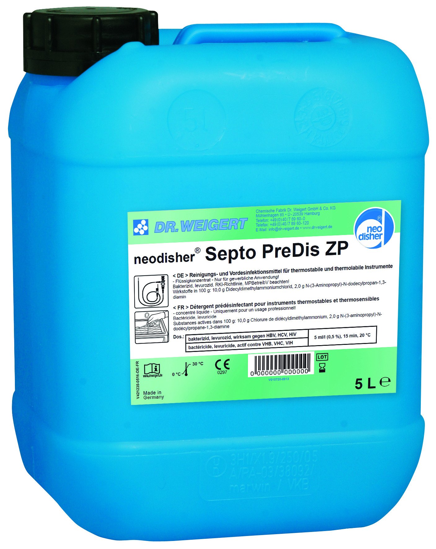 Le détergent pré-désinfectant Neodisher Septo Predis ZP de Dr Weigert est un produit de nettoyage hautement performant, spécialement conçu pour assurer une pré-désinfection efficace des dispositifs médicaux et des instruments.