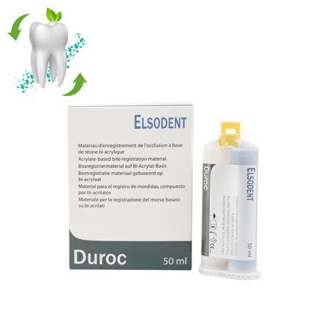 Duroc est une résine bi-acrylique Elsodent qui a été modifiée pour la solidarisation des transferts d'implants en bouche et pour le contrôle de l'occlusion.