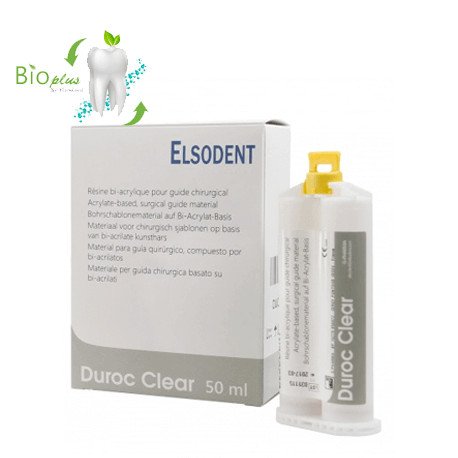 Duroc Clear est un matériau translucide afin de visualiser les structures anatomiques sous-jacentes. De plus, la résine est très résistante et légèrement résiliente à la fois afin de pouvoir retirer facilement les excès. Le matériau dispose d'un temps de prise adapté d'environ 1 min et une faible exothermie de prise. A l'aide de sa composition de thixotrope, la résine ne coule pas lorsqu'on l'applique.