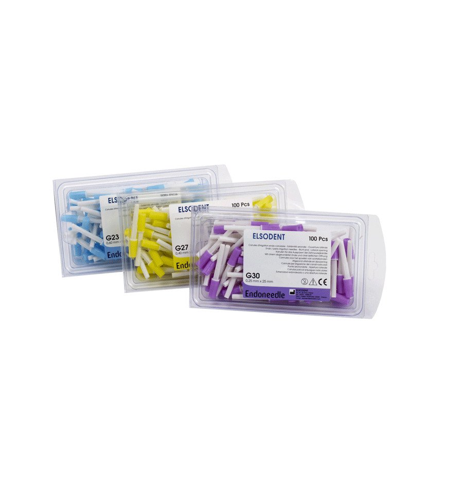 Les canules d'irrigation Endoneedle vendues par boîtes de 100 unités, conçues par Elsodent sont utilisées lors des rinçages des canaux radiculaires sans le moindre risque de perforation de l'apex.