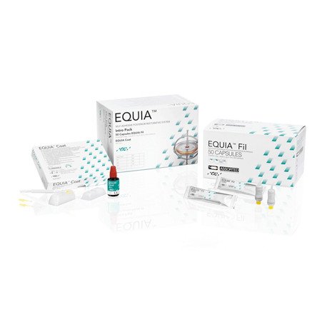 L'EQUIA Intro Pack de GC est un matériau en verre hybride de restauration haute densité, c'est-à-dire qu'il est composé de verre ionomère et de résine.