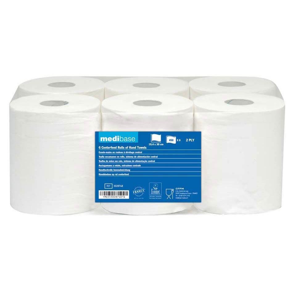 Les bobines d'essuie mains Medibase sont à dévidage central, 2 plis gaufrés, 103 mètres soit un total de 450 formats. Medibase a conçu ces essuie-mains en pure ouate de cellulose, un isolant économique et très polyvalent.