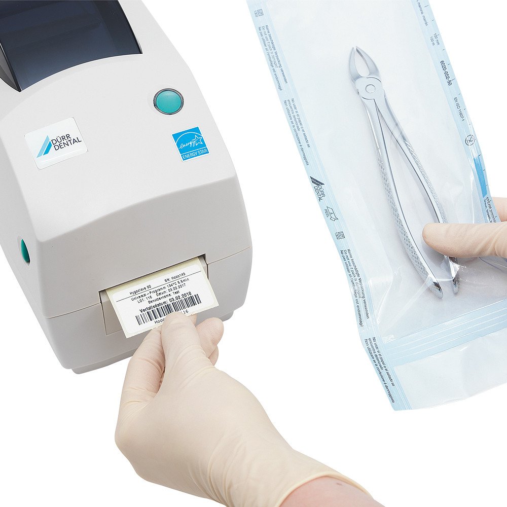 Hygoprint Easy Dürr Dental est une étiqueteuse automatique pour les sachets de stérilisation utilisable avec l'autoclave Hygoclave 90. Cette étiqueteuse permet l'impression instantanée d'étiquettes spécifiques aux différents programmes de stérilisation.