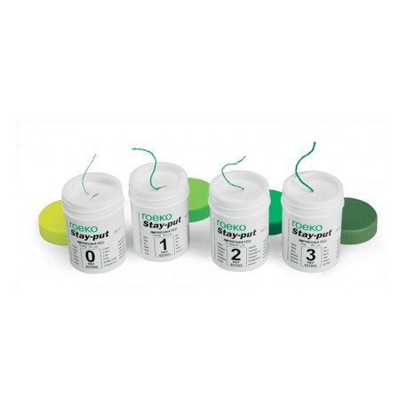 Le fil de rétraction Stay-Put combine à la fois un fil de restauration tressée et malléable avec un fil relativement fin. De plus, les Stay-Put restent en position. Le fil de coton tissé est imprégné de chlorure d'aluminium. Le Stay-Put doté d'attributs astringents, apaise les saignements des patients. D'ailleurs, la circulation sanguine du patient est épargnée par l'absence d'épinéphrine. Le fil ne glisse pas , il est imperméable et ne possède pas d'épinéphrine.