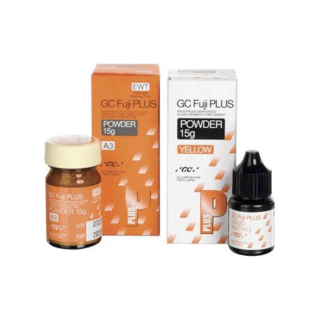 Le Fuji PLUS en poudre de GC est un ciment renforcé à la résine, utilisé pour effectuer des scellements dentaires.