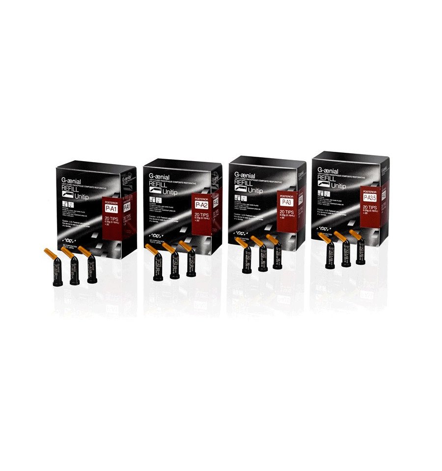Les unitips de G-aenial Postérieur conçus par la marque GC, afin d'être utilisés dans la réalisation de restaurations.