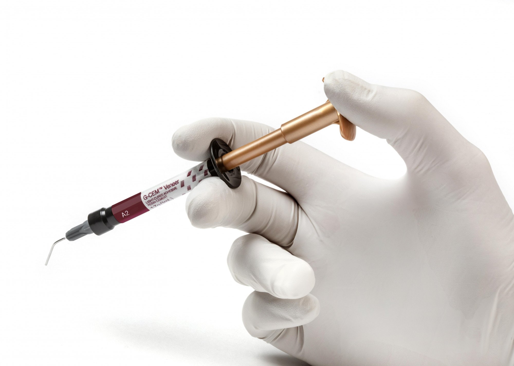Le G-Cem Veneer de la marque GC est utilisé pour la cimentation standardisée lors de restaurations indirectes .