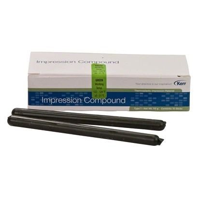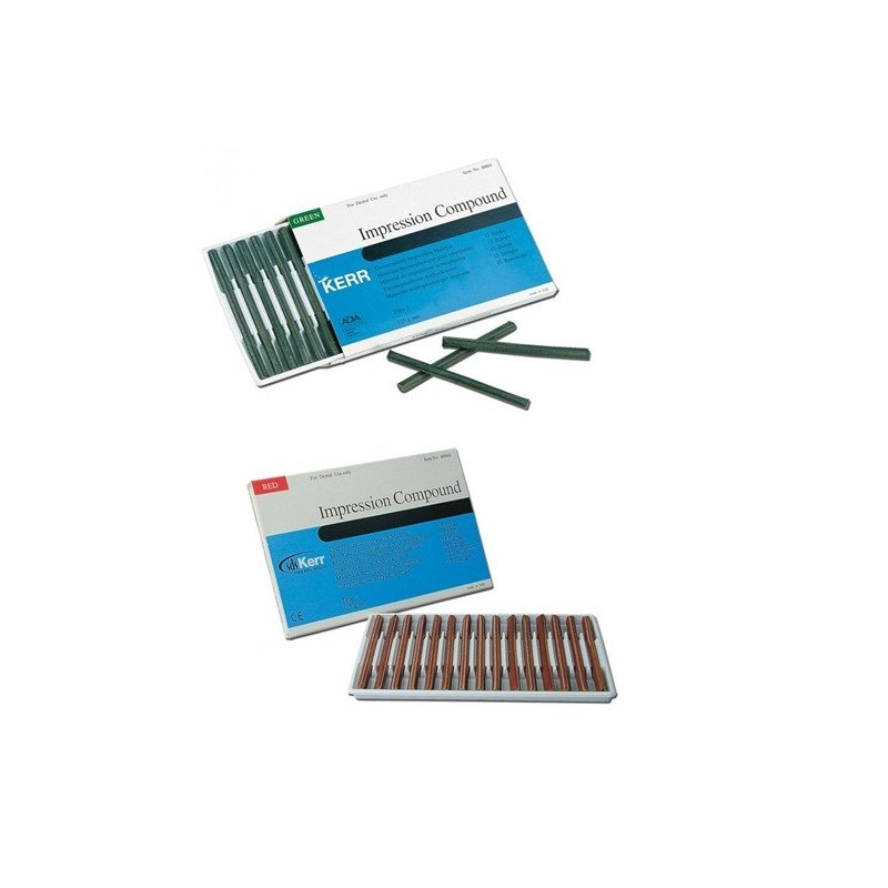 Impression Compound de Kerr est une pâte thermoplastique. Cette pâte en bâtons est utilisable pour les empreintes à la bague de cuivre et l'adaptation fonctionnelle des porte-empreintes individuels.