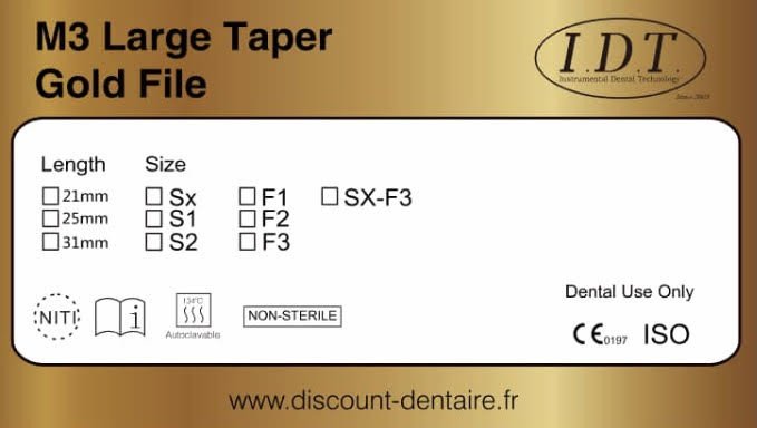 Les limes M3 Gold de IDT sont utilisés pour le déplacement de la dentine ainsi que la mise en forme du canal radiculaire