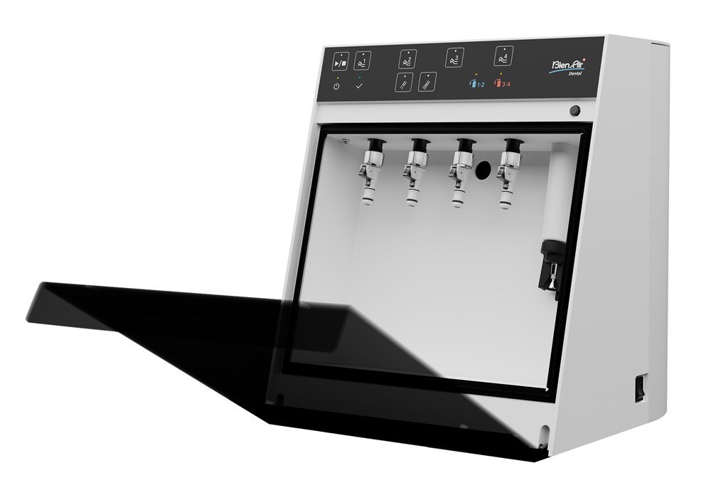 L'automate de nettoyage Bien-Air est doté d'un système Clean Airblow. En effet, grâce à son système de double électrovannes et à un conduit dédié, le système Clean Airblow fournit de l'air pur sans mélange d'huile. Lors de l'élimination de l'eau avant la lubrification, il expulse l'eau présente dans la tête, optimisant ainsi les résultats de lubrification et réduisant au minimum la période d'inactivité avant l'utilisation.