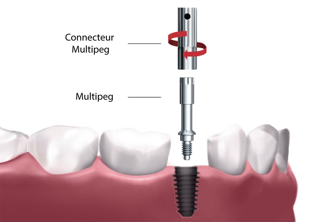 Le MulTipeg est compatible avec tous les principaux systèmes d'implants. Il est également stérilisable une vingtaine de fois et respecte les tissus.