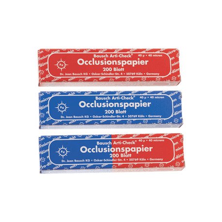 Les papiers à articuler 40µ, de la marque Bausch, permettent le contrôle de l'occlusion statique et dynamique en deux couleurs de manière simple et efficace.