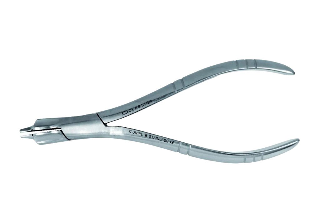 La pince universelle Classic Chicago Dental est conçue pour une utilisation polyvalente en dentisterie, notamment pour la manipulation de fils et de composants dentaires. Les mâchoires dentées permettent une prise solide sur les matériaux, tandis que les mâchoires lisses offrent une surface plane pour les manipulations délicates.