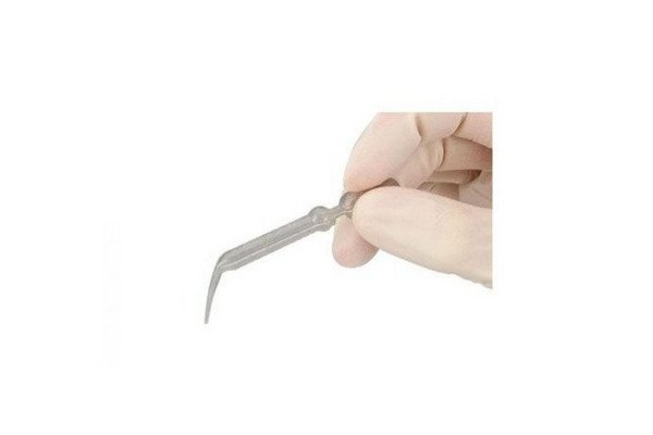 Les pipettes d'une longueur de 6,8cm, procurent à son utilisateur un dosage relativement précis ainsi qu'un dosage correct. Les pipettes plastiques de Hager Werken, délivrent la solution goutte à goutte lorsque le praticien exerce une pression sur la 1er chambre. Tandis qu'une pression sur la 2eme chambre, permet de réaliser une vidange complète de la seringue. D'ailleurs, la pointe de la seringue peut tout à fait être coupée, dans le cas ou le praticien souhaite avoir un plus grand débit, pour un rinçage sous gingivale notamment.