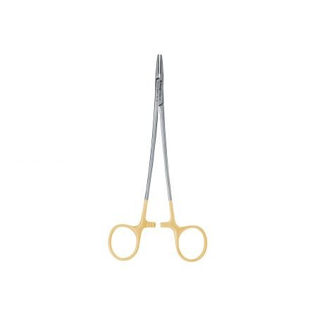 Il est doté d'un insert en carbure de tungstène avec une forme pyramidale rectifiée afin d'assurer une prise en main ferme. Il possède aussi un style anneau de doigt afin de garantir une meilleure prise. Les performances et la longévité optimales du porte-aiguilles sont dues à des spécifications rigoureuses de fabrication. Son revêtement en acier inoxydable de qualité chirurgicale favorise sa résistance à la corrosion.