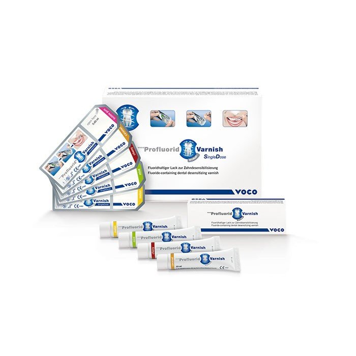 Le Profluorid Varnish est un vernis fluoré, s'adaptant à la teinte de la dent, et soulage les dents hypersensibles.D'ailleurs, le Profluorid Varnish entraine un scellement des turbulis ainsi que la création de dépôts de fluorure de calcium sur l'email.