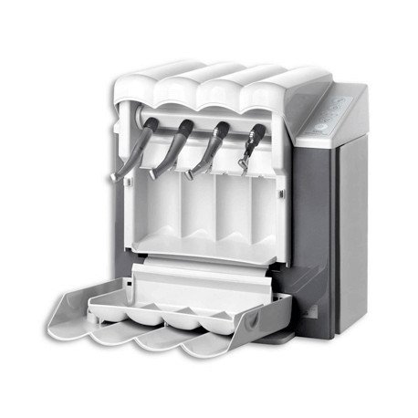 Avec cet appareil, vous êtes assurés d'un entretien rigoureux et rapide de vos instruments rotatifs. Grâce au nouveau produit d'entretien, celui-ci s'émulsionne au centre des instruments et désincruste les saletés. Ces derniers sont évacués à l'aide d'air comprimé afin de réaliser un graissage optimal par la suite. Le dosage de ce produit d'entretien est automatique et exact, il assure donc une application précise sur l'instrument.