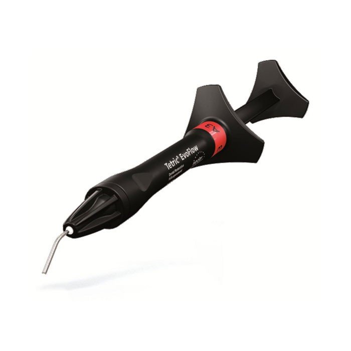 La seringue Tetric Evoflow d'Ivoclar est un composite très utilisée en Europe lors de restaurations antéro-postérieures de classe I à V.