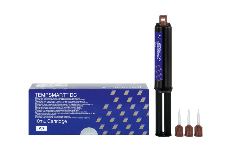 Les TEMPSMART DC sont utilisées pour les restaurations provisoires, solides et esthétiques à prise duale, bis-acrylique au niveau des couronnes et les bridges.