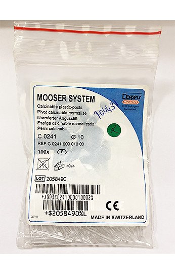 Le pivot calcinable normalisé Mooser C 0241 de Dentsply Maillefer sont en plastique.