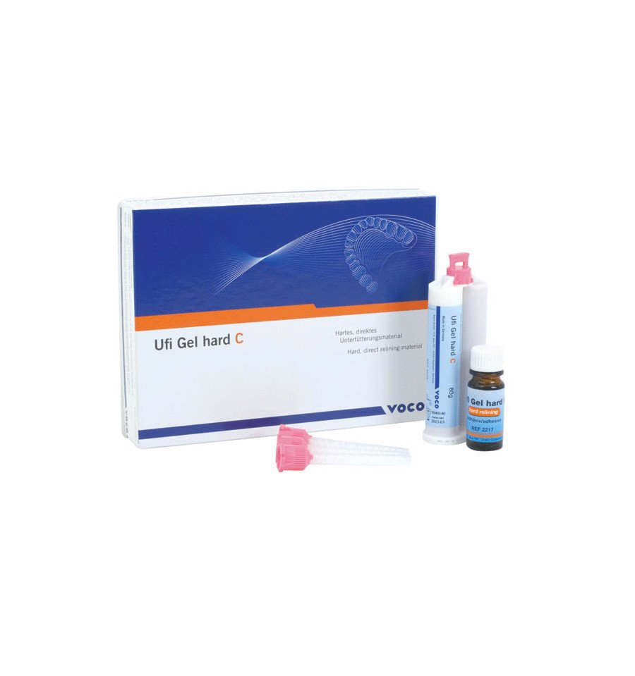 Ufi gel Hard C permet d'effectuer des rebasages durs, permanents, complets ou partiels ainsi les prothèses partielles ou totales se réadaptent facilement. Le matériau peut aussi être utilisé pour la prolongation des bords de la prothèse.